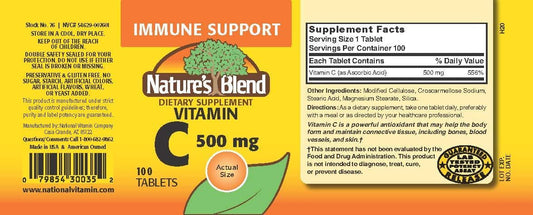 100 Tablets of Nature's Blend Vitamin C 500 mg - Immune Support and Antioxidant SupplementVendor:Nature's BlendRegular price $92.21 AUDRegular priceUnit price / per-