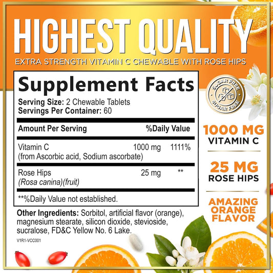 Chewable Vitamin C 1000mg with Rose HIPS Bioflavonoids - Immune Support & Antioxidant Protection - 120 TabletsVendor:Hello Lovely!Regular price $92.58 AUDRegular priceUnit price / per-