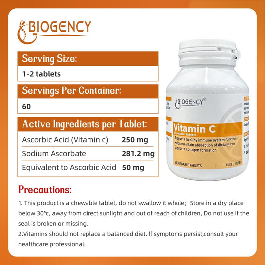 Organic Vitamin C Chewable Supplement Tablets - Vegan Antioxidant for Skin and Immunity - Gluten Free, 60 CountVendor:BiogencyRegular price $127.13 AUDRegular priceUnit price / per-