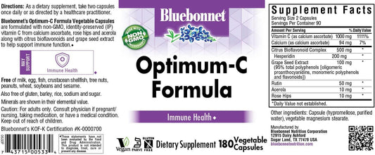 180 Count BlueBonnet Optimum C Formula Vegetable Capsules for Immune Support