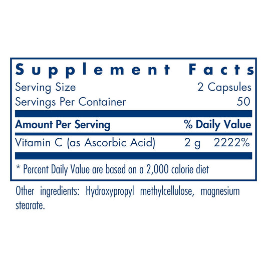 Allergy Research Group Pure Vitamin C - 100 Capsules for Vegetarians