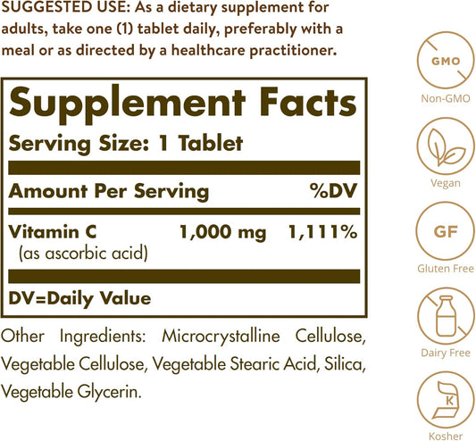 Solgar Vitamin C 1000mg Tablets - Antioxidant & Immune Support for Skin & Joints - Bioflavonoids Supplement - Non-GMO, Vegan, Gluten Free - 90 Servings