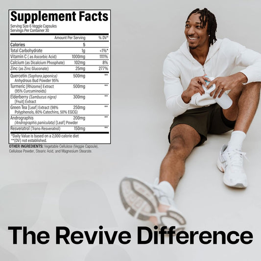 Revive MD Immune Defense Capsules - Vitamin C, Zinc, Elderberry - Vegan & Gluten-Free - 180 Vegetarian Capsules