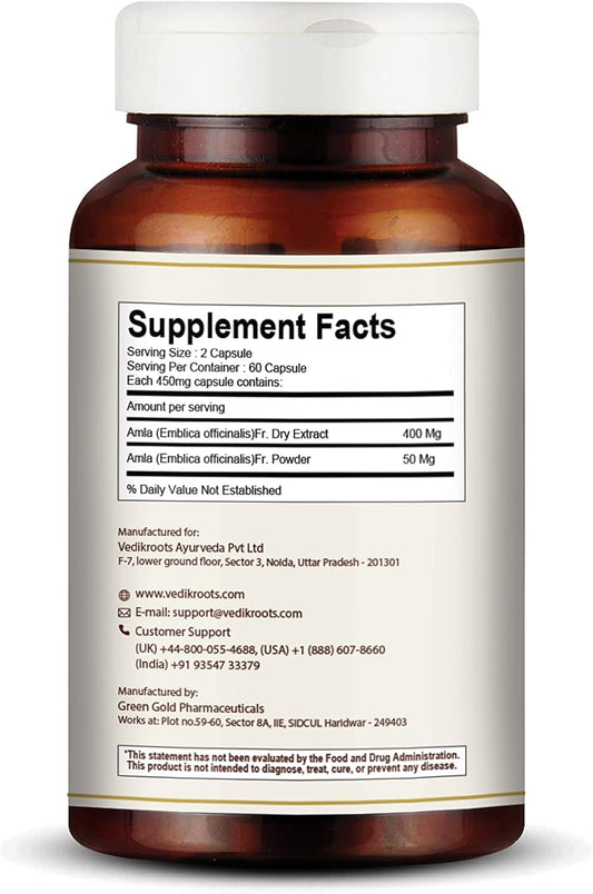 100% Organic Amla Capsules for Immunity Boost - Natural Vitamin C Source - Herbal Supplements (60 Capsules)