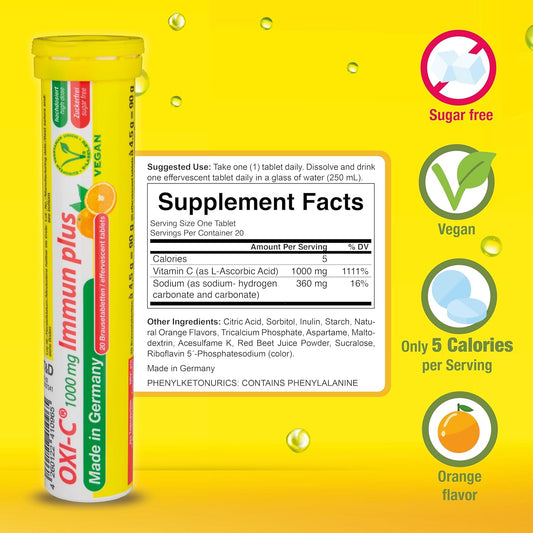 240 Effervescent Vitamin C Tablets - 1000mg - Vegan Orange Drink - T&D Oxi C - Made in Germany