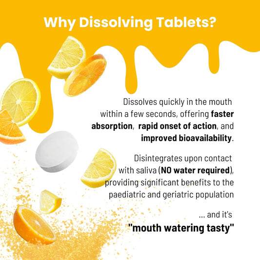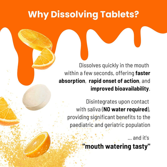 Orange Flavor Nutra Meltz Vitamin C 250mg Tablets - Boosts Immune Health & Bone Strength - 60 Quick Dissolving Tablets for Deficiency