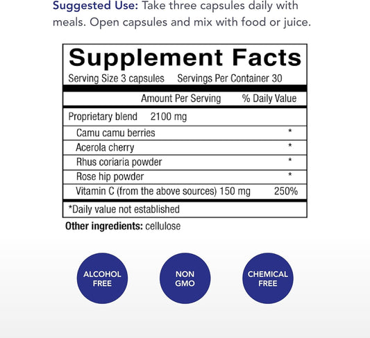 Organic Raw Food Vitamin C Capsules with Flavonoids - Physician's Strength - 90 Capsules - Kosher - 30 Servings