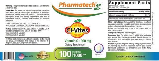 Pharmatech Ci-Vites High Potency Vitamin C 1000mg Supplements for Immune Support - Antioxidant, Sugar Free, 100 Tablets, Made in USA