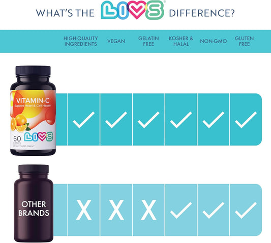 Vegan Gluten-Free High-Potency Vitamin C Gummies with Antioxidant & Immune Support - 60 Count