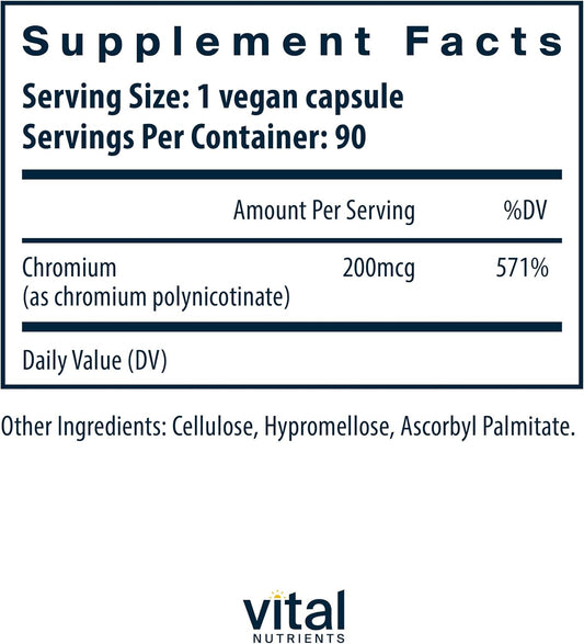 Chromium Polynicotinate 200mcg Capsules for Healthy Fat and Carb Metabolism - Cholesterol Support - Non-GMO - 90 Count