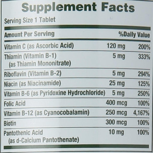 Time-Released Nature's Bounty Vitamin B-Complex with Folic Acid & Vitamin C, 125 Count x2 - Energy & Nervous System Support