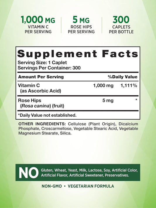 300 Count Nature's Truth Vitamin C 1000mg Caplets with Rose HIPS - Vegetarian, Non-GMO & Gluten Free