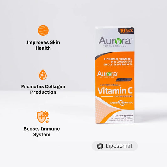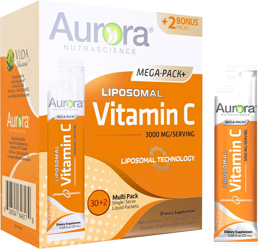 Vida Lifescience Aurora Nutrascience Liposomal Vitamin C Mega-Pack - Immune Support, 3,000 mg Per Serving, Gluten Free, Non-GMO - 10 Single Serve Packets, 6.8 fl oz