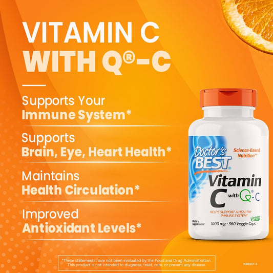 Doctor's Best Vitamin C 1000 mg Capsules - Immune System Support, Non-GMO, Gluten-Free, Soy-Free, Vegan - 360 Count