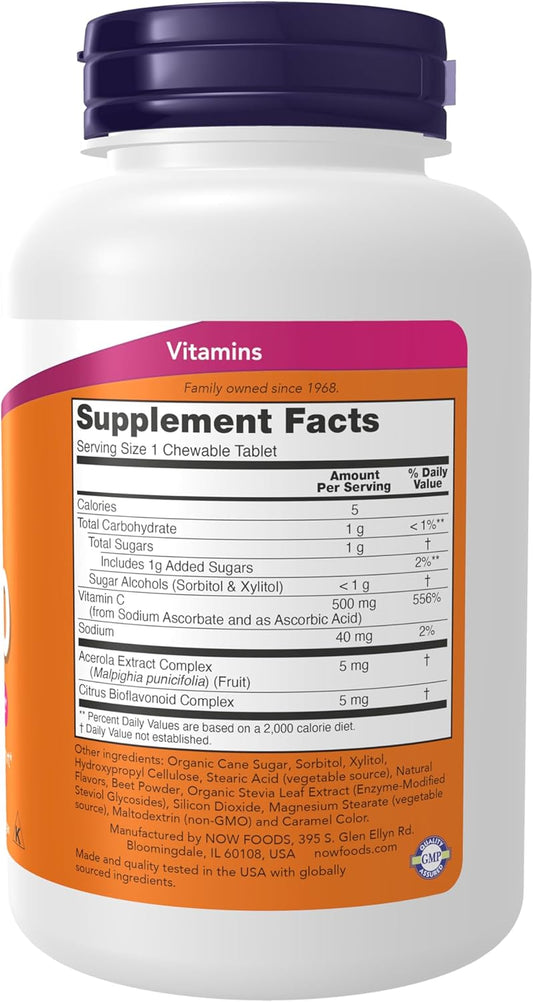 NOW Foods Vitamin C-500 Chewable Lozenges, Cherry Flavor - Antioxidant Protection - 100 Supplements
