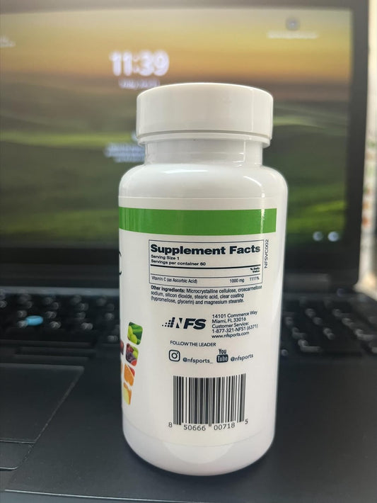 Vegan Gluten-Free NF Sports Vitamin C 1000mg for Immune System Support, Collagen Formation, Iron Absorption, 60 Capsules