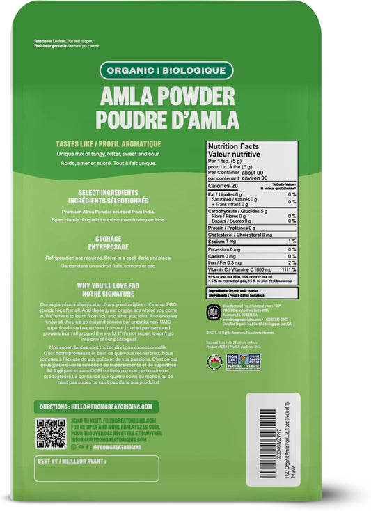 Organic Amla Powder 1lb - USDA Certified Indian Gooseberry (Amalaki) - Non-GMO Vitamin C - 100% Raw & Natural - Pack of 1
