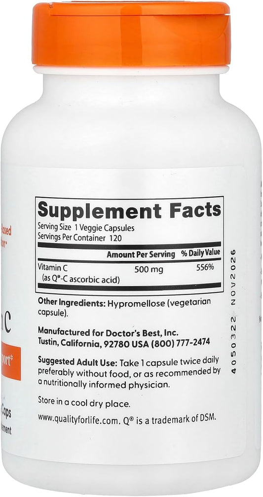 Doctor's Best Vitamin C 500mg Capsules - Pack of 120