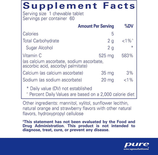 Pure Encapsulations Vitamin C Chewables - 60 Chewable Tablets for Immune & Antioxidant Support with Natural Orange-Strawberry Flavor