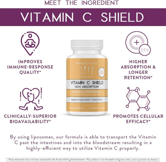 High Absorption Liposomal Vitamin C Shield with 1000mg PureWay-C for Immune Health - 60 Veggie Caps
