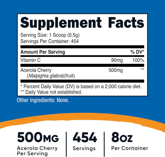 Nutricost Acerola Cherry Powder - 0.5 LB - Gluten Free & Non-GMO - Natural Vitamin C Supplement