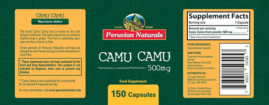 Organic Peruvian Camu Camu Vitamin C Capsules - 1,000mg, 150 Vegan Pills, Non-GMO Whole Food Supplement
