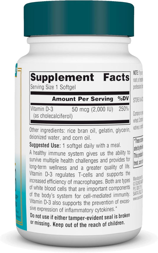 Source Naturals Vitamin D-3 Capsules - 2000 IU for Bone & Immune Health - Bioactive Form - 200 Count