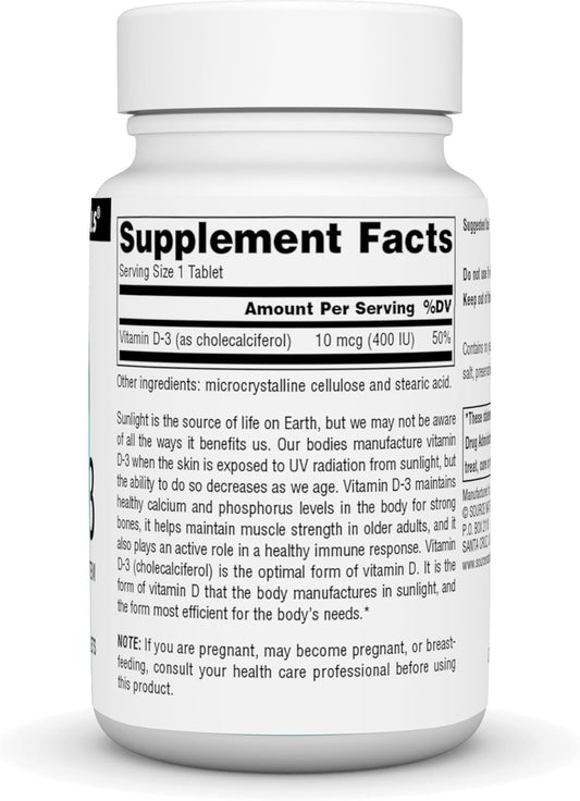 200 Tablets Source Naturals Vitamin D-3 400 IU Supplement for Bone Health and Immune Support