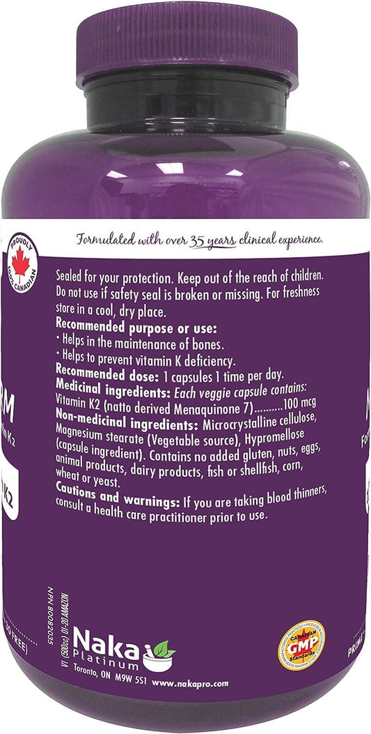 High Potency Naka Platinum K2 (MK-7) 100 mcg 330 Veggie Caps - Bioactive Vitamin K2 Supplement
