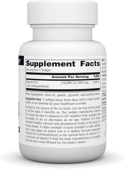 Vitamin D-3 Softgels for Bone & Immune Health - 10,000 IU - 60 Capsules by Source Naturals