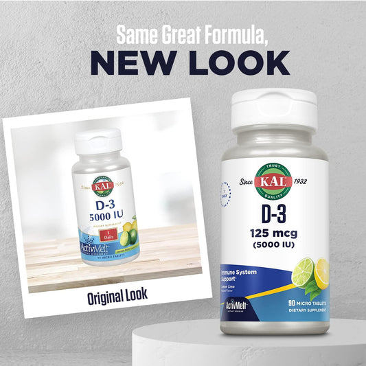 KAL Vitamin D-3 5000 IU ActivMelt Micro Tablets - Lemon Lime Flavor - Immune & Bone Support - 90 Servings