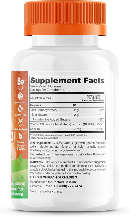 Doctor's Best Doc's Kids Vitamin D3 Gummies 1000iu for Children - Supports Bone Health, Immunity, 60 Count
