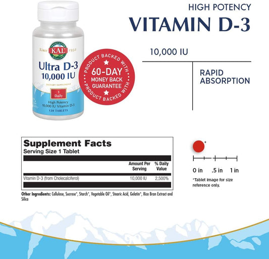 KAL 10000 Iu Ultra D-3 Tablets, 120 Count | Pack of 3