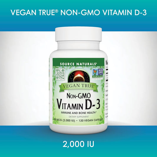 Source Naturals Vegan True Non-GMO Vitamin D-3 2,000 IU Supplement for Immune and Bone Health - 90 Capsules