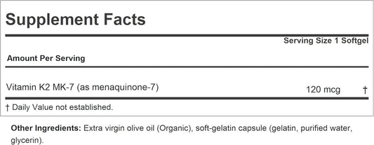 120 mcg Vitamin K2 MK7 Softgels for Bone, Heart, & Arterial Health - Pure & Additive-Free Formula, Easy to Swallow