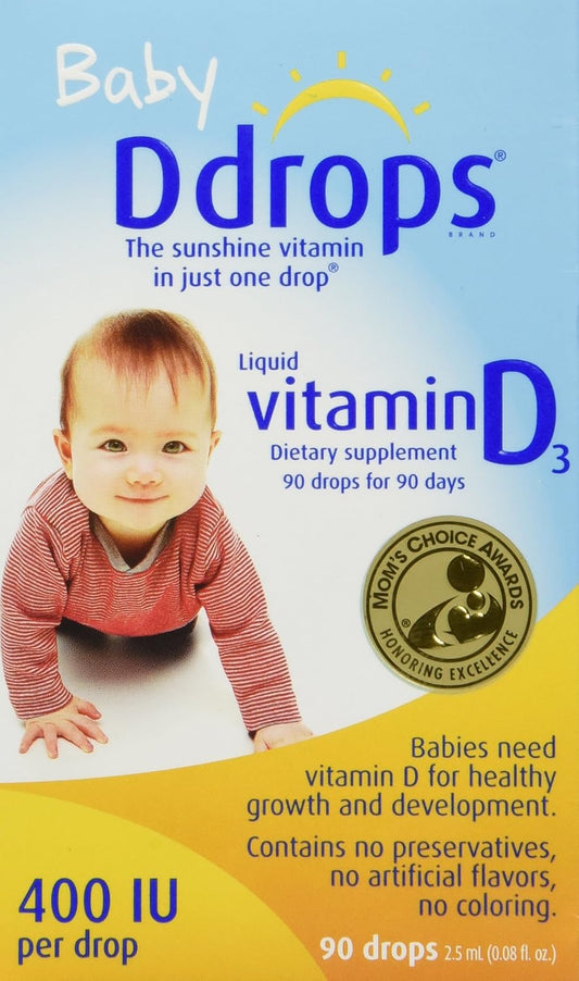 Ddrops Baby Liquid Vitamin D3 400 IU - 2.50 mL (90 Drops) - Natural Supplement for Infants and Babies