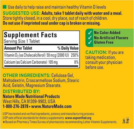 400-Count Nature Made Vitamin D3 Tablets, 2000 IU for Immune Health, Strong Bones & Teeth, Muscle Function - 250% Daily Value