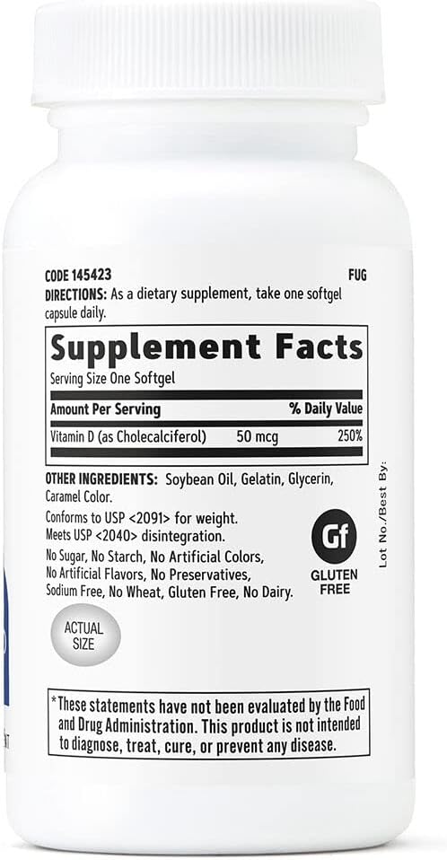 200 Softgels of Puritan's Pride Vitamin D3 50mcg (2,000 IU) for Immune Health & Bone Support (Pack of 2)