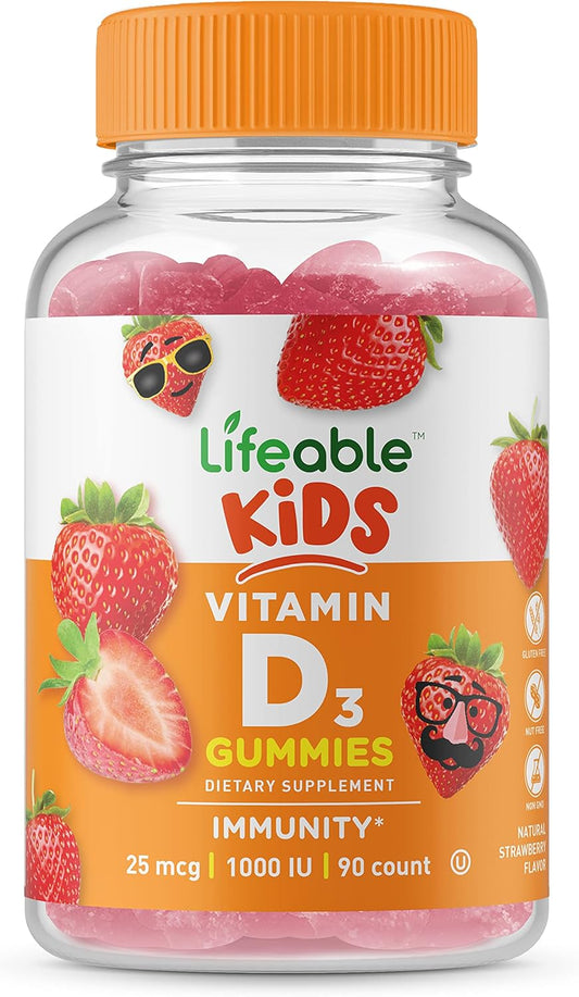 120 Strawberry Flavor Chewable Gummies with 1000 IU of Vitamin D3 by Uncle Moishy