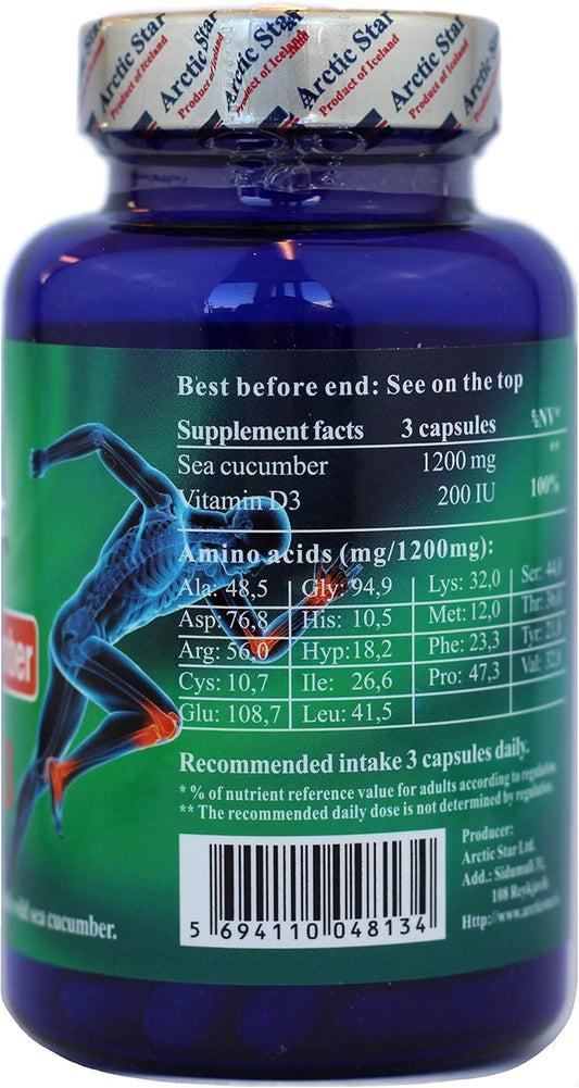 Wild Caught Arctic Star Sea Cucumber Extract Capsules with Vitamin D3 - 90 Pills, 400mg - Cucumaria Frondosa Supplement Bottle