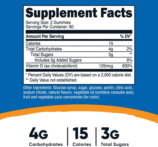 120 Nutricost Vitamin D3 Gummies 5,000 IU - Mixed Berry Flavor, 60 Servings, 125mcg per Gummy