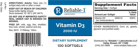 High Quality Vitamin D3 2000 IU Softgels from Reliable 1 Laboratories - 100 Count