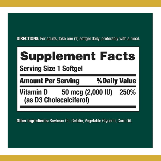 High Strength Nature's Bounty Vitamin D Softgels - 2,000 IU for Immune Support