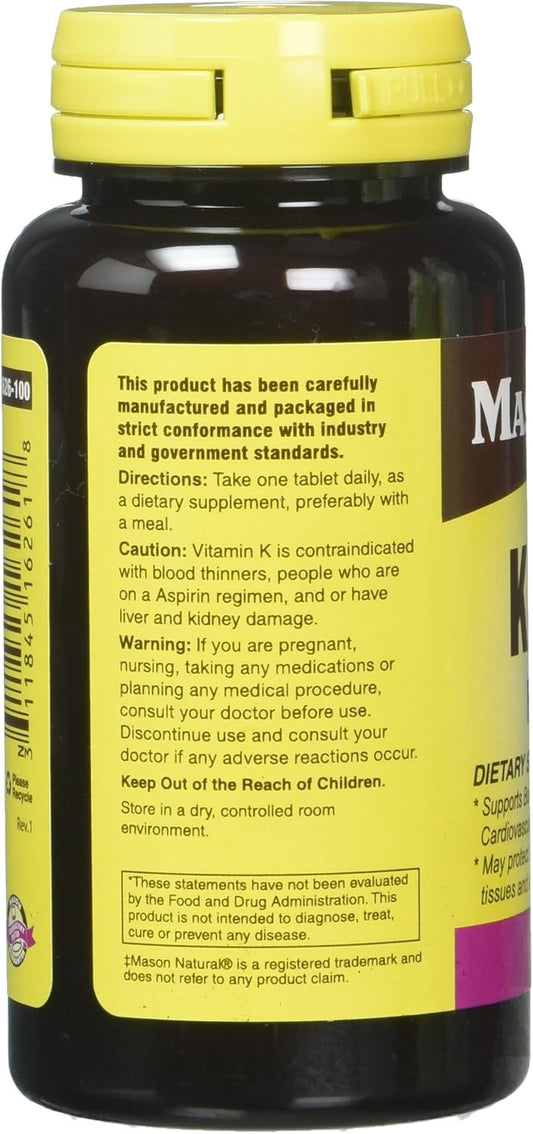 Pack of 3 Mason Natural Vitamin K2 100 mcg Plus D3 1000 IU Tablets - 300 Tablets Total