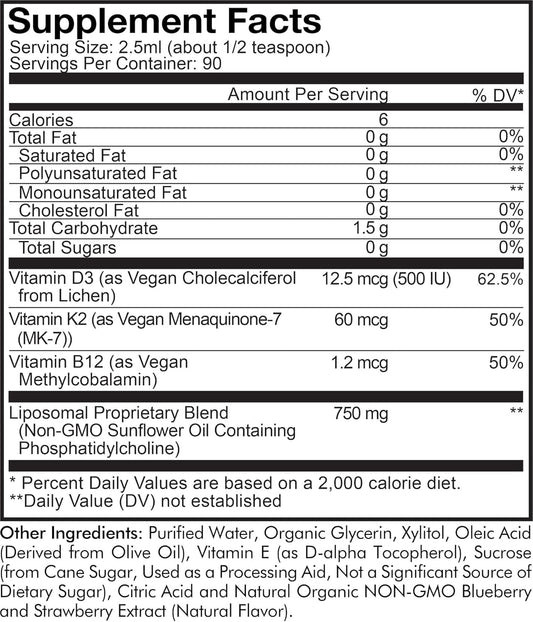 Teen Wonder-D: Liposomal Vegan Vitamin D3 + K2 Liquid Supplement for Teens - Plant-Based B12, Non-GMO, Mixed Berry Flavor - 3-Month Supply (7.6 fl oz)