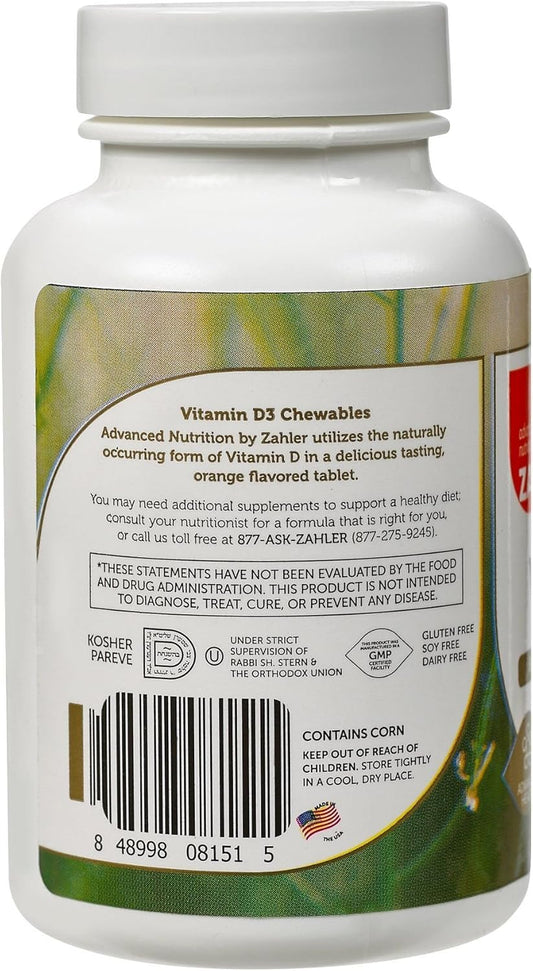 Zahler Chewable Vitamin D3 2000IU Tablets for Bone & Immune Health - Vegetarian, Gluten-Free, Non-GMO, Kosher - 120 Count
