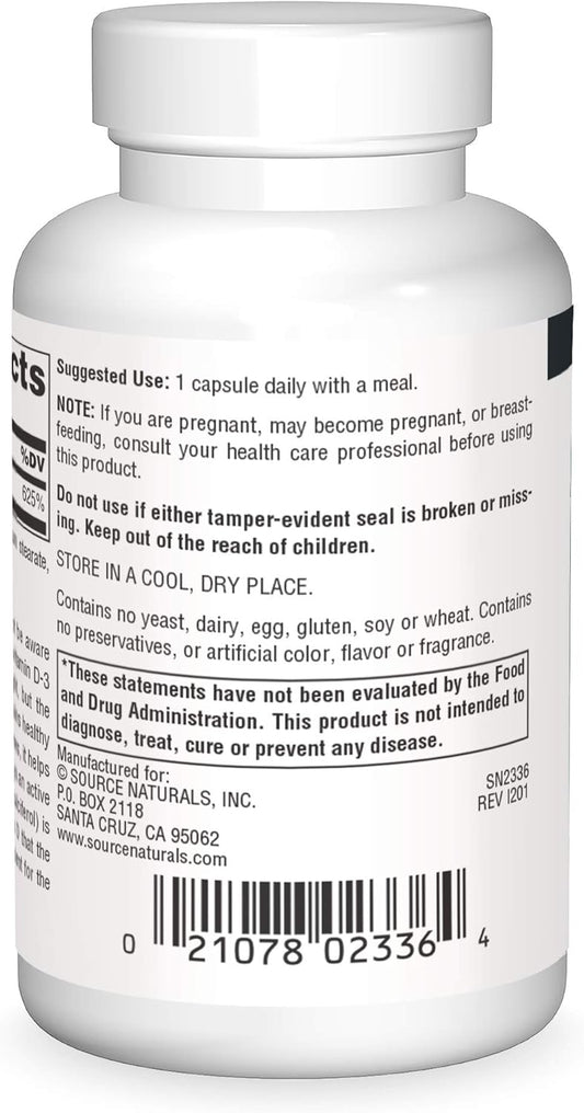 5000 IU Vitamin D-3 Capsules for Bone & Immune Health by Source Naturals - 60 Count