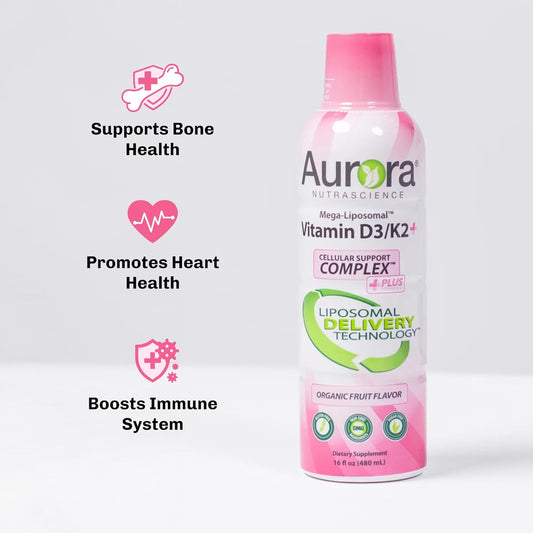 Aurora Nutrascience Mega-Liposomal Vitamin D3/K2+ with Vitamin C - Organic Fruit Flavor - Gluten Free & Non GMO - 16 fl oz