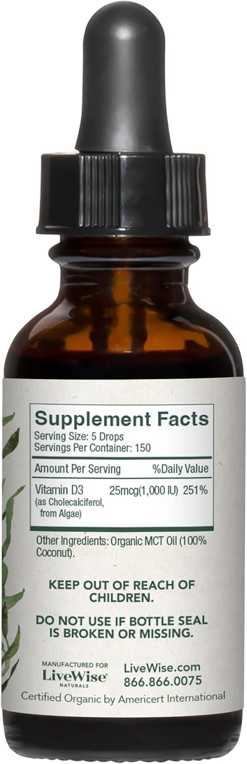 Vegan-Friendly Vitamin D3 Liquid Drops by Live Wise Naturals for Optimal Health and Wellness