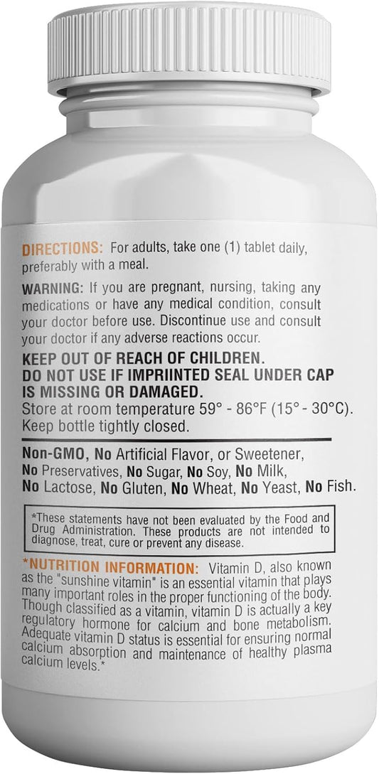 High Potency Vitamin D3 Tablets for Heart Health, Immune Support, and Muscle Function - 1500 IU Age Defense Supplement for Men and Women - 35.7 mcg D3 Tablets